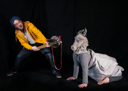 Ein Musiker erlebt phantastische Begegnungen im eigenen Kopftheater und bizarre tierische Metamorphosen. Die Geschichte des Musikers, der sich selbst begegnete, inspiriert von tierischen Charakteren frei nach den Bremer Stadtmusikanten der Gebrüder Grimm. Das Theater Cyanacrylat präsentiert im Abendprogramm eine humoristische Reise dargestellt mit Mitteln des zeitgenössischen Figurentheaters: Figuren, Musik, physisches Theater und neu entstandene Kult-Instrumente. Es spielen Maren Lange und Björn Schimpf unter der Regie von Konrad Haller. Live-Musik von Benedikt Hench mit Koffercello, Gläserspiel, singender Säge und Gesang, sowie Björn Schimpf an Jeans-Saxophon und Keksdosen-Gitarre.